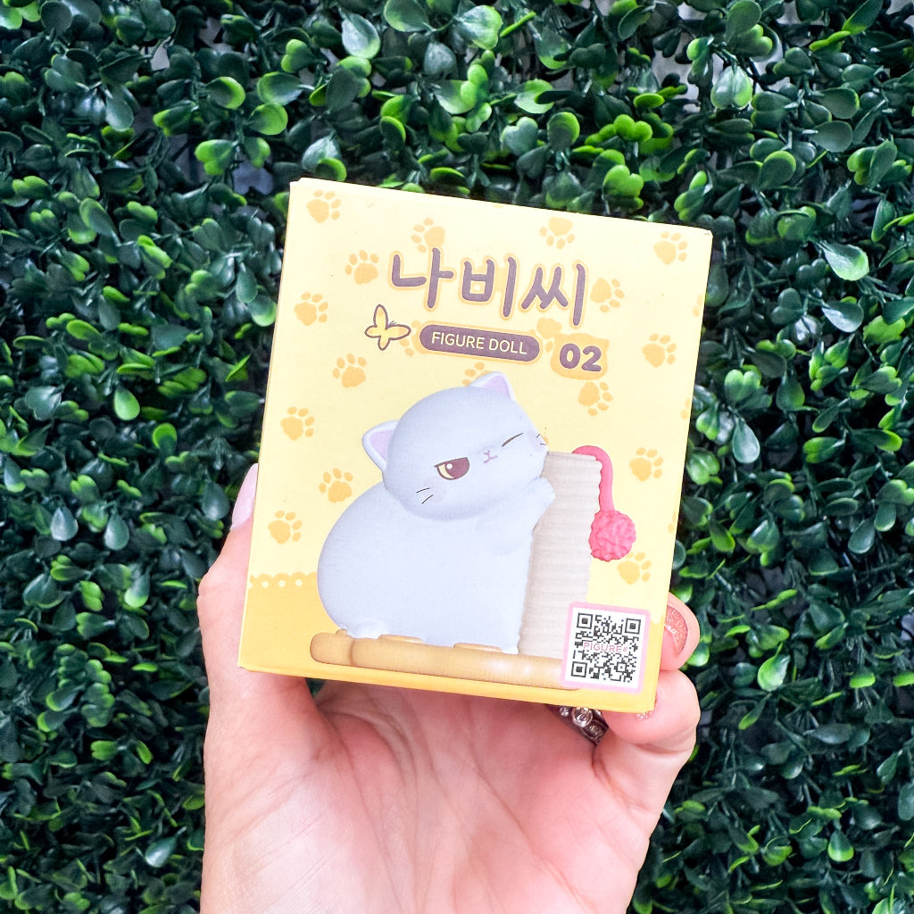Meet Mr. Nabi: “Nabi” means butterfly in Korean. He’s a rescued, three-legged cat living his best life—always caught in everyday kitty antics with a mischievous smirk (think: playing in boxes, tangling yarn, and generally getting into trouble).