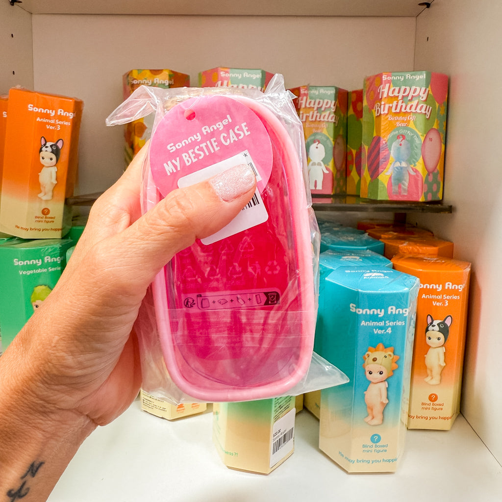 Take your little boyfriend everywhere. The Sonny Angel My Bestie Case is a clear, lightweight carrying case made specifically for Sonny Angel mini figures—so you can clip him to your tote, backpack, or pouch and show him off on the go. A snug inner strap keeps your figure steady and protected while you’re out and about.